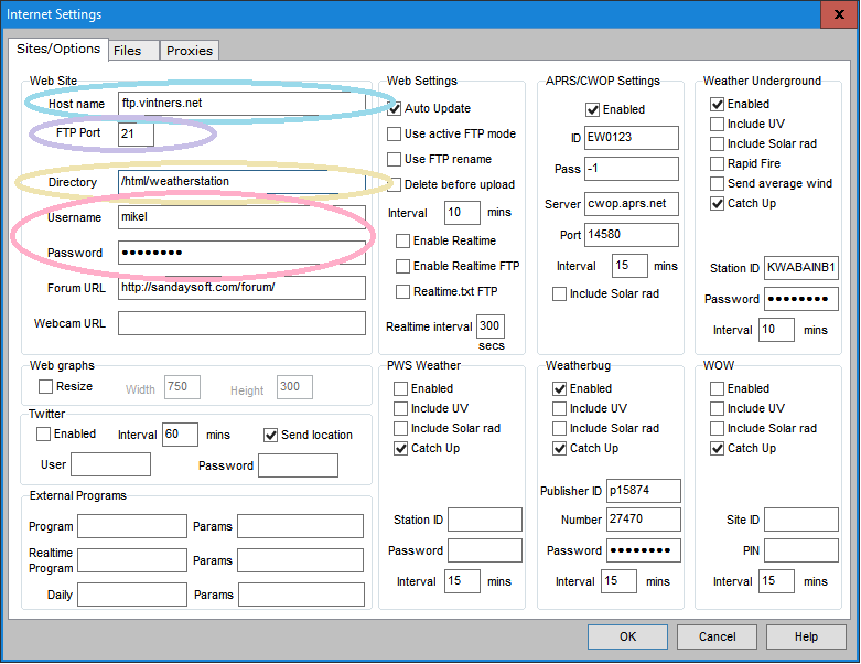 - ftp settings are the same ones you used in the Cumulus