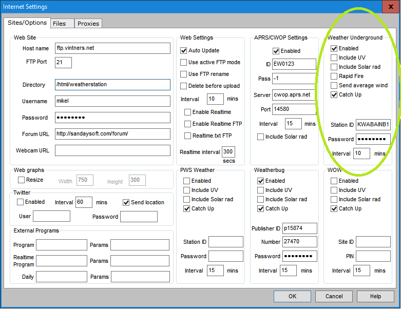 - Password: (provided by MikeL) - probably the "station key" from WU above (pink highlight)