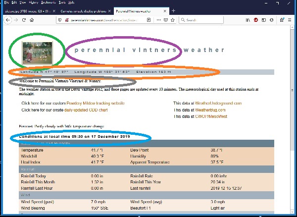 https://www.Vintners.net/weatherstation/pmi.php At top left, in blueish-gray blocky lower-case letters, says simply "weather"; should say "[location] weather". In sample screen, the purple highlighted area is wrong/missing.